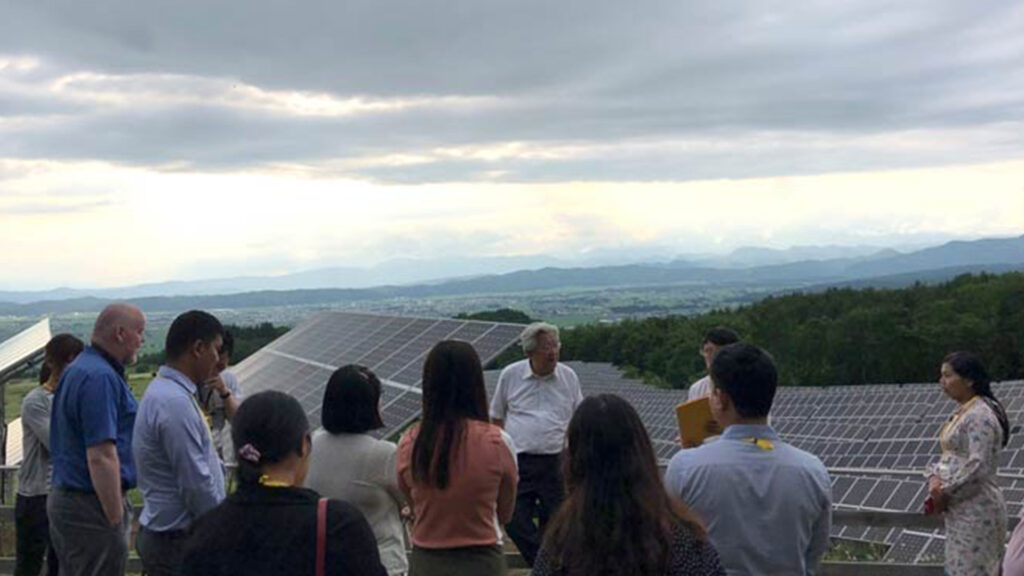 ミャンマーで再生可能エネルギーの導入に取り組む、中央・地方政府の若手行政官や公営企業の若手職員の皆さまに、雄国太陽光発電所をご視察いただきました。