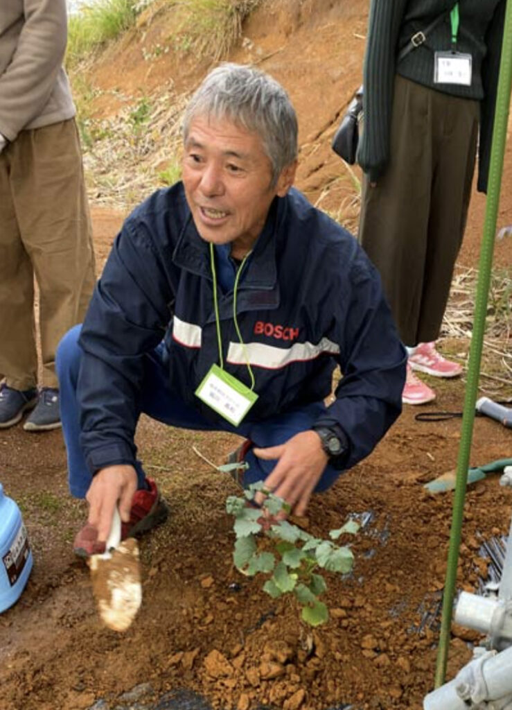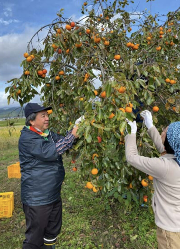 普段ブドウ畑の管理をしている鵜川氏が苗植えや、柿の渋抜き方法も丁寧に教えてくれました。