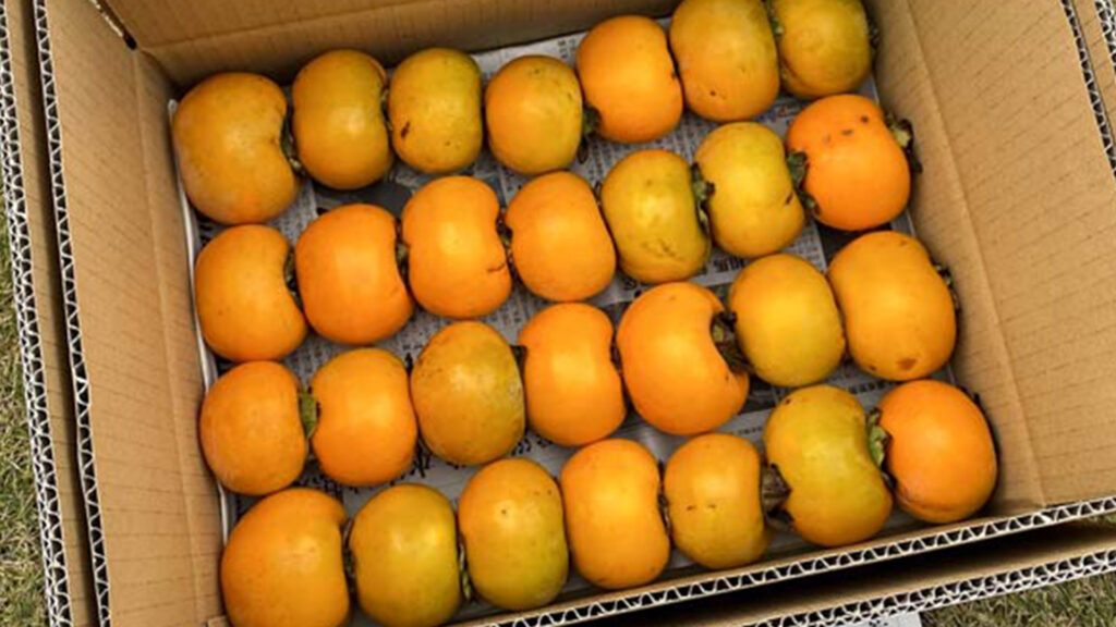 柿は鵜川氏秘伝(!)の焼酎をかけて渋抜きをします。約2週間後くらいから食べ頃となります。楽しみですね!