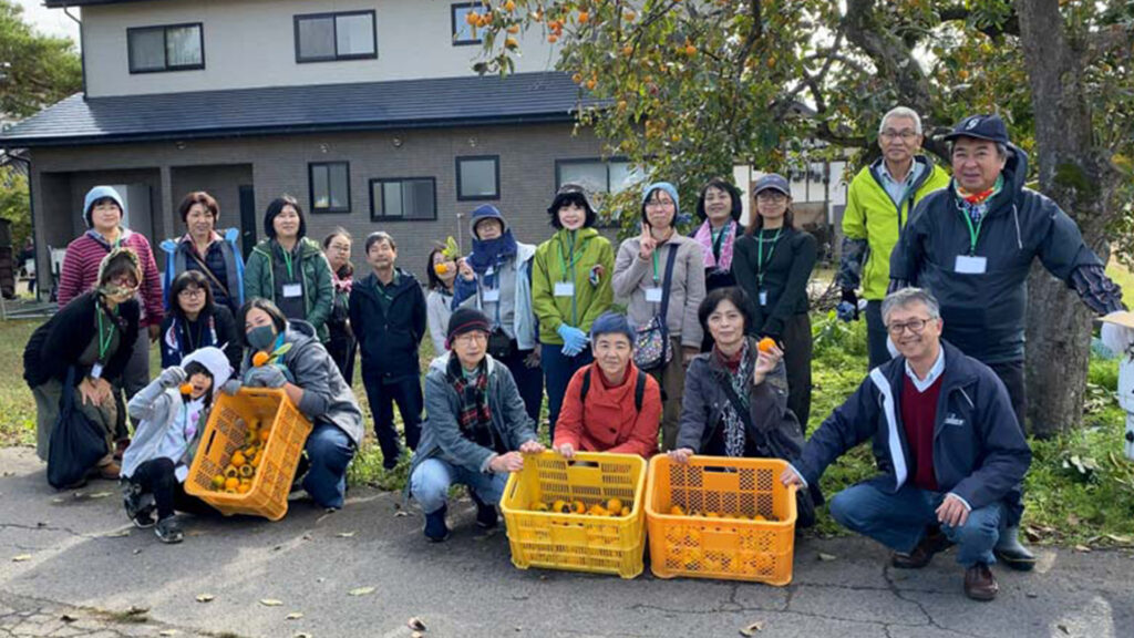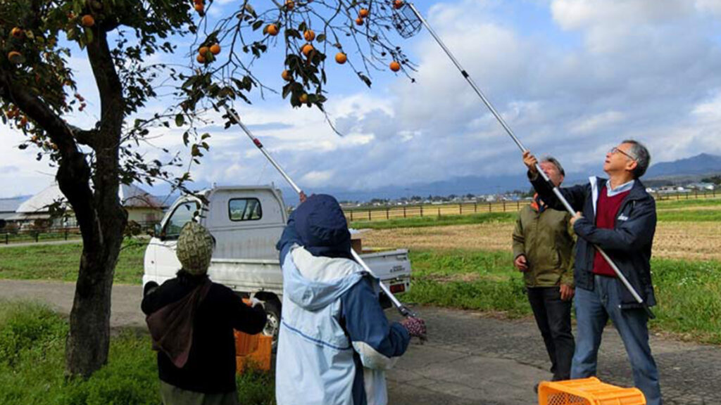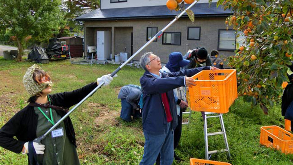 内容は「柿泥棒・柿渋抜き体験」「ワイン用ブドウ苗定植体験」「事業内容紹介」「バーベキュー交流会」です。