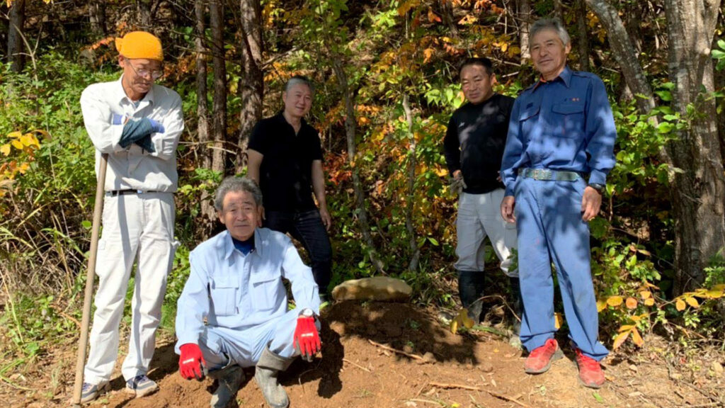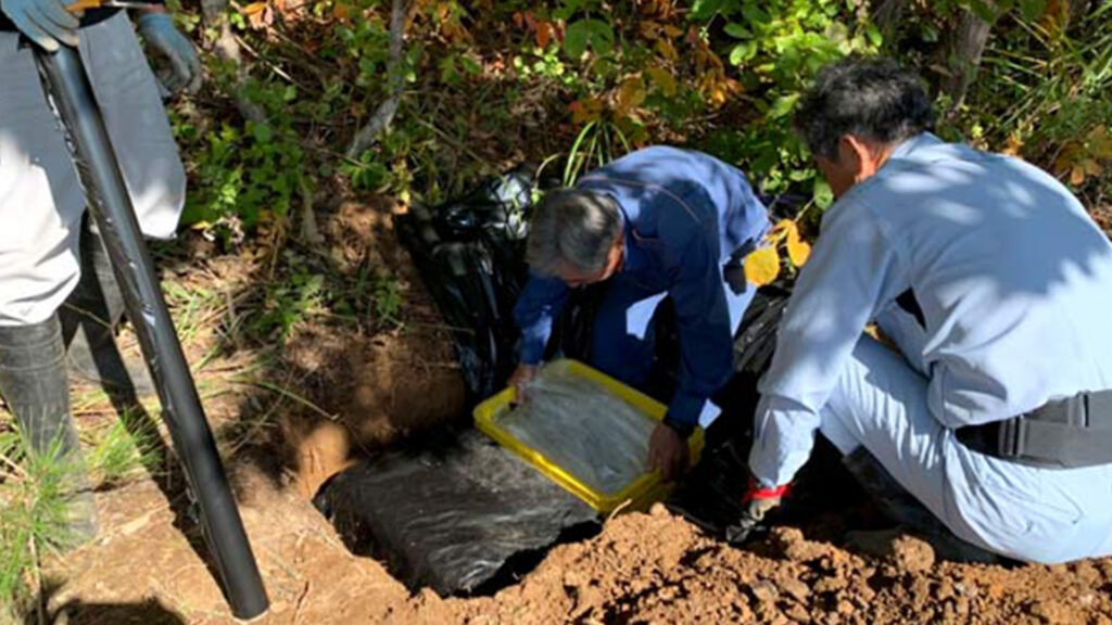 次の日に参加者の皆さんに記名していただいたワインを畑に埋め込みました。5年後に掘り出して楽しみたいと思っています。