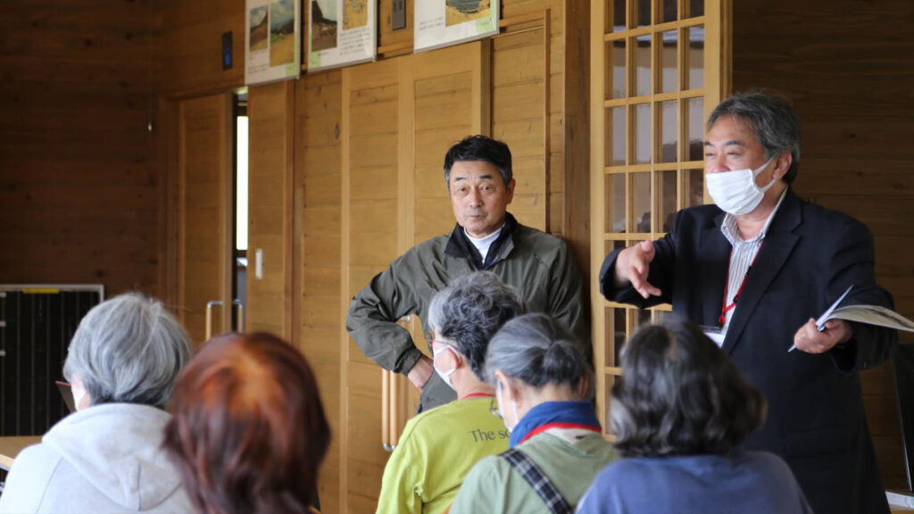 総会・運営委員会後は、会津こっちゃこ倶楽部の皆様と合流しました。弊社雄国大学にて、景色を眺めながら昼食をお取りいただいた後、弊社と関連企業の取り組みについて、社長からのお話をお聞きいただきました。