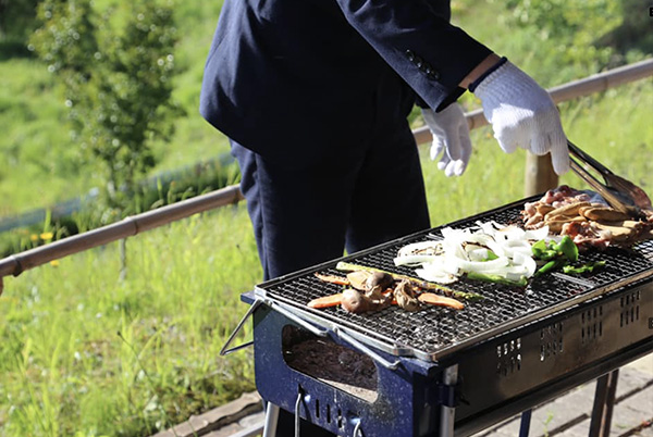 畑作業の後は、onikoさん(とご友人のお2人)によるダンス教室で親睦を深めていただき、交流会としてBBQを行いました。