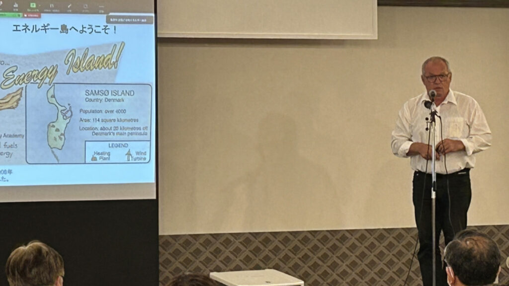 講演会では、淑徳大学大学院客員教授・慶應義塾大学名誉教授の金子勝氏、そしてサムソ・エネルギー・アカデミー代表のソーレン・ハーマンセン氏のお二人を講師に迎え、それぞれの立場から「地域分散型エネルギーの重要性」について語っていただきました。