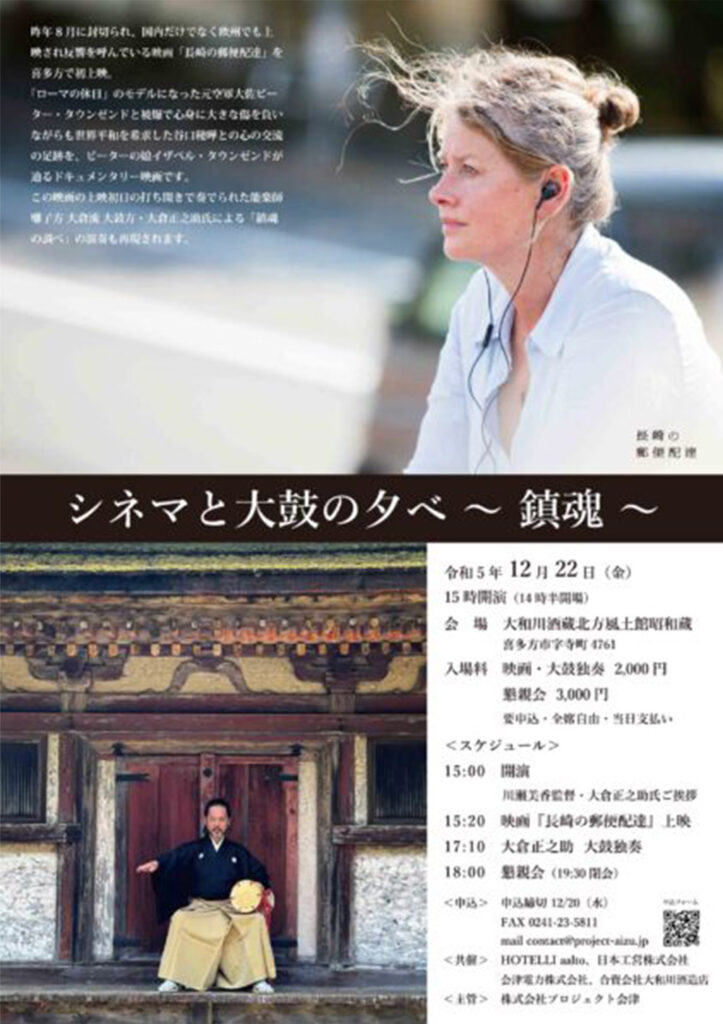 本作の上映初日に行われた打ち開きで奏でられた、能楽師・囃子方 大倉流 大鼓方・大倉正之助氏による「鎮魂の調べ」。感動の演奏が、今回も再現されます!