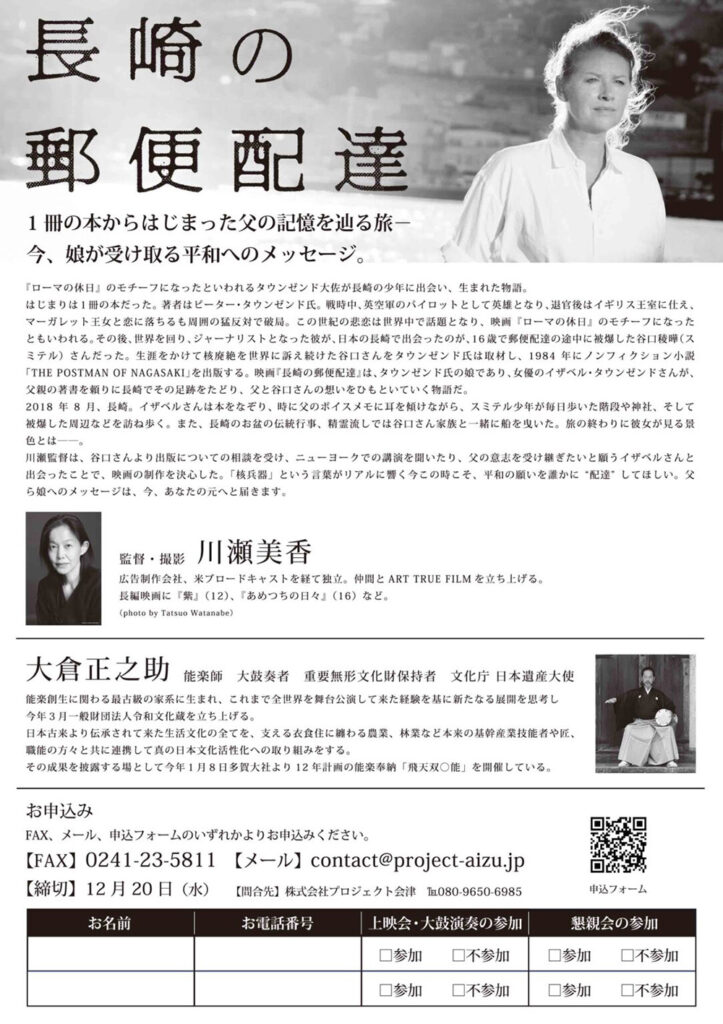 はじまりは1冊の本だった。著者はピーター・タウンゼンド氏。戦時中、英空軍のパイロットとして英雄となり、退官後はイギリス王室に仕え、マーガレット王女と恋に落ちるも周囲の猛反対で破局。この世紀の悲恋は世界中で話題となり、映画『ローマの休日』のモチーフになったともいわれる。その後、世界を回り、ジャーナリストとなった彼が、日本の長崎で出会ったのが、16歳で郵便配達の途中に被爆した谷口稜曄(スミテル)さんだった。生涯をかけて核廃絶を世界に訴え続けた谷口さんをタウンゼンド氏は取材し、1984年にノンフィクション小説「THE POSTMAN OF NAGASAKI」を出版する。 映画『長崎の郵便配達』は、タウンゼンド氏の娘であり、女優のイザベル・タウンゼンドさんが、父親の著書を頼りに長崎でその足跡をたどり、父と谷口さんの想いをひもといていく物語だ。