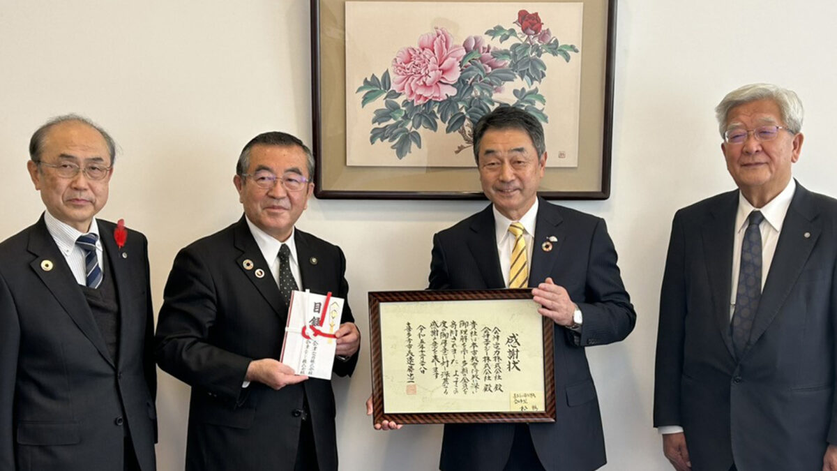 贈呈式では、会津電力および会津エナジーの代表から市長へ目録をお渡しし、感謝状を頂戴いたしました。