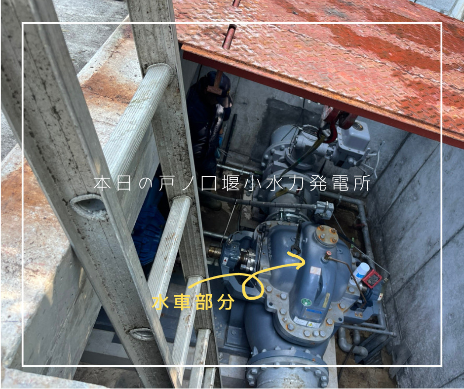 こちらは、「戸ノ口堰 小水力発電所」の2023年8月19日(土)のメンテナンス作業時の様子です。
