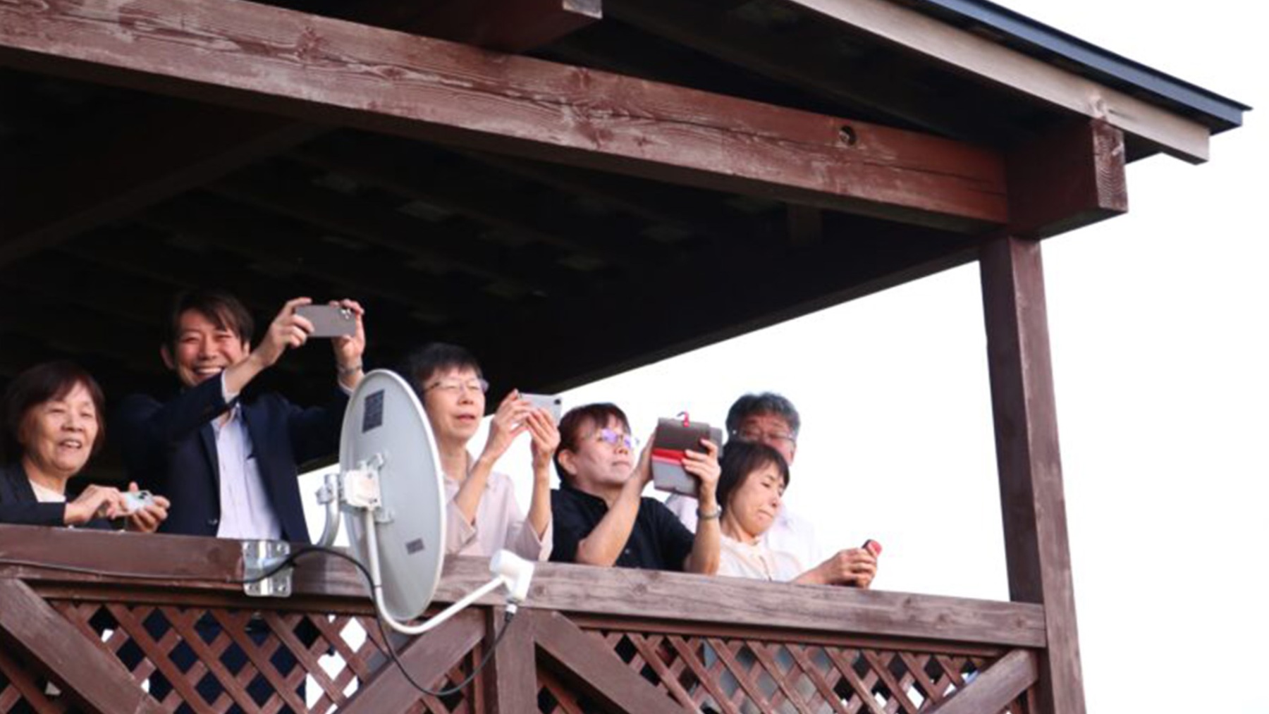 当日は、満天テラスから見える景色もひときわ美しく、田んぼに張られた水面が夕日に照らされ、幻想的な風景が広がっていました。